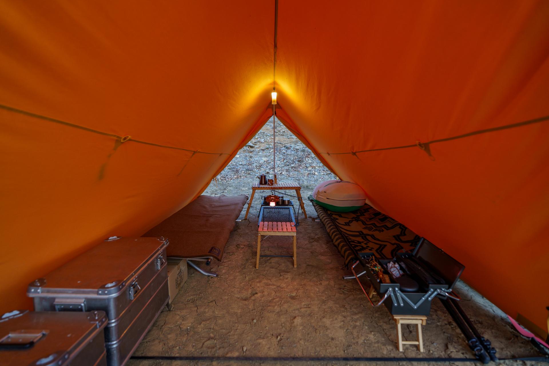 2.7M x 2.7M로 기존보다 넓어진 실내 공간은 야전침대와 테이블을 여유 있게 배치할 수 있으며,